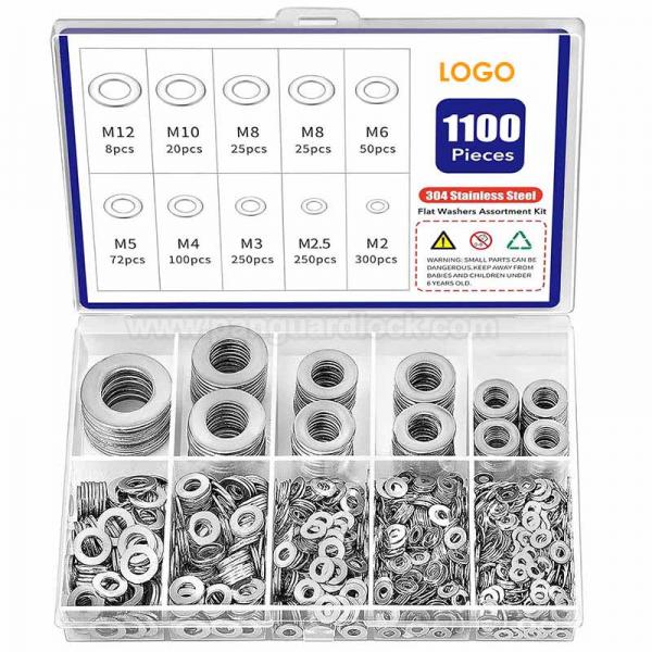 1100 Pcs Flat Washers Assortment Kit – 304 Stainless Steel, 9 Metric Sizes (M2–M12), Metal Washers for Screws and Bolts – Ideal for Automotive, Construction, Industrial, and DIY Use