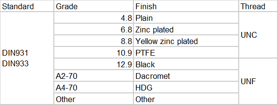 All the finish treatment of JIS hex bolt can be plain,zinc plated,yellow zinc plated,PTFE,black,dacromet ,HDG or other ways.