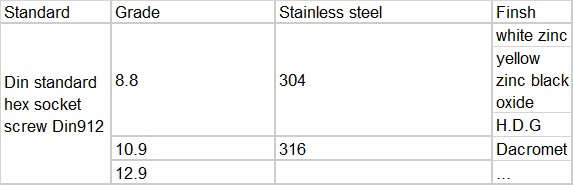 Hex socket screw used in electric power facilities、electric appliance、chemical engineering mechanical equipment and so on.And usually used with nut and washer.And normal socket screw tensile strength is High to 1000Mpa and more.